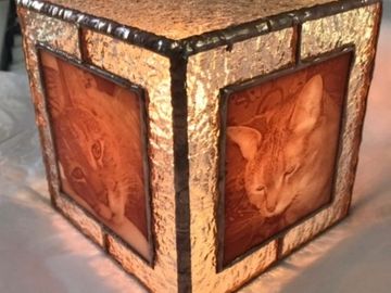 Photographic image fused onto glass and inserted in memory light fixture. Light fixture made by New Ricky Stained Glass