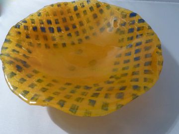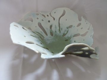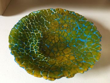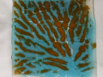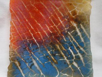 crackled patterns created by manipulating powder over a fiber mat and edges are left with an organic trim