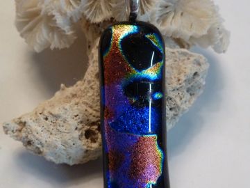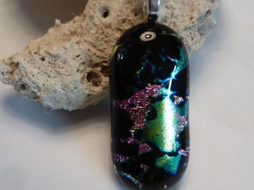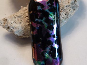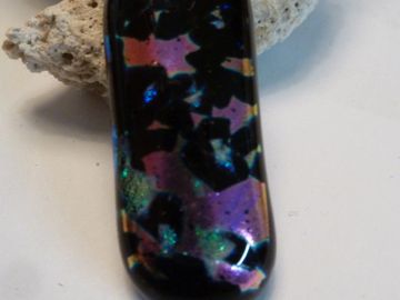 double sided pink& green dichroic glass fused over black opal to create depth