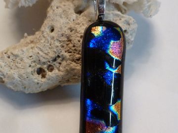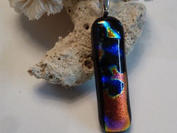 double sided red & blue dichroic glass, fused over black opal to create depth